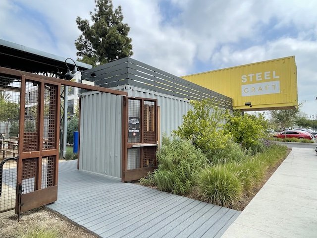 Steelcraft features structures made of shipping containers, which house food vendors like Barrio (Filipino/Korean fusion), The Penalty Box (burgers), and Dark Horse Coffee Roasters.